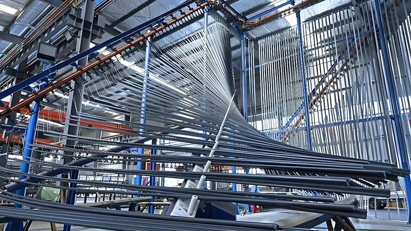 Como empresa integrada verticalmente que se especializa en investigación y desarrollo, diseño, producción, ventas y servicio, contamos con 16 líneas de producción de extrusión de aluminio, múltiples hornos de fusión avanzados a nivel internacional y equipos para anodizado, coloración y recubrimiento en polvo. La instalación es capaz de producir perfiles de aleación de aluminio de diversas especificaciones con una capacidad de producción anual de 80.000 toneladas.